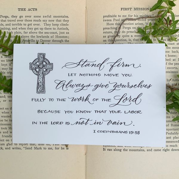 The Paperglaze "Bella Scriptura" collection of scripture prints contains more than 50 different Old and New Testament verses from the Bible. The signature black and white prints look beautiful in any style frame. The designs were completely hand-drawn with pointed pen and ink and then printed on fine art, natural, acid-free paper. Most prints are available in 4X6 and 5X7 and a few 8X10. The scripture collection can be found in the Paperglaze Etsy shop.