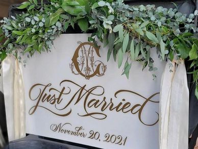 Signage is one of the most important parts of your event. They serve an important function in directing your guests and making your event run smoothly. Signage is also one of the easiest ways to dress up your decor and add personality to your wedding. Some possible signage needs include a welcome sign, guest book, bar signs, seating charts, favors sign and something for the couple's send off! Paperglaze has experience writing on acrylic, wood, mirrors, chalkboard, fabric and more. The possibilities are endless.
