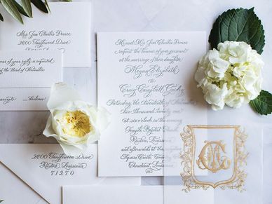 First impressions are priceless, so wow your guests with invitations hand-addressed by a professional. Paperglaze will ensure that your envelopes are graced with a lettering style that matches the tone of your event. By investing in a calligrapher to address your invitations, you give your invitations the elegance they deserve and yourself the time you need! Paperglaze will make sure that each envelope is formatted correctly, beautifully, and with correct titles for guests— without the unneeded stress.